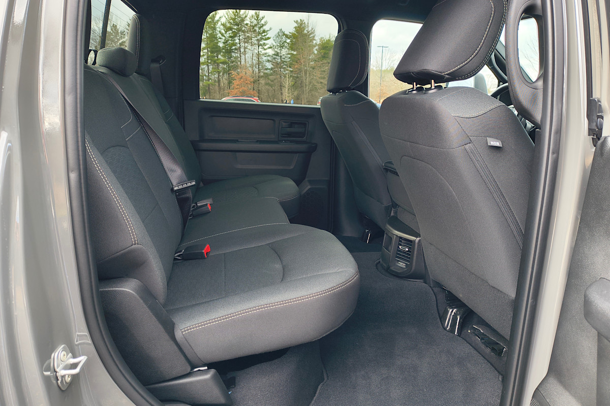 Adaptive steering, automatic emergency braking, forward-collision warning, and lane-keep assist are all part of the Safety Group package. Blind-spot monitors with conventional trailer coverage, pedestrian detection, and rear cross-traffic alert are standard on Power Wagon, Rebel, Laramie, Limited, and Limited Longhorn trucks, but optional on Tradesman, Black Express, Warlock, and Big Horn trucks. Ram’s ParkSense parking sensor package is optional on Tradesman, Black Express, and Warlock, but standard on all other trim levels. Adaptive cruise control, however, is standard across the board. Other available safety tech includes a rear-seat reminder alert, a driver-attention monitor, and traffic-sign recognition.