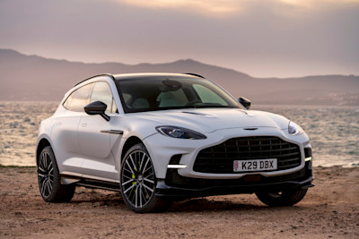 Inside, the DBS pampers its passengers with soft semi-aniline leather seats with Alcantara leather trim. The power-adjustable seats display unique DBS stitch patterns and the DBS logo. The main instrument cluster features white numerals on a dark graphite background, which contrasts nicely with the polished alloy controls and trim.
