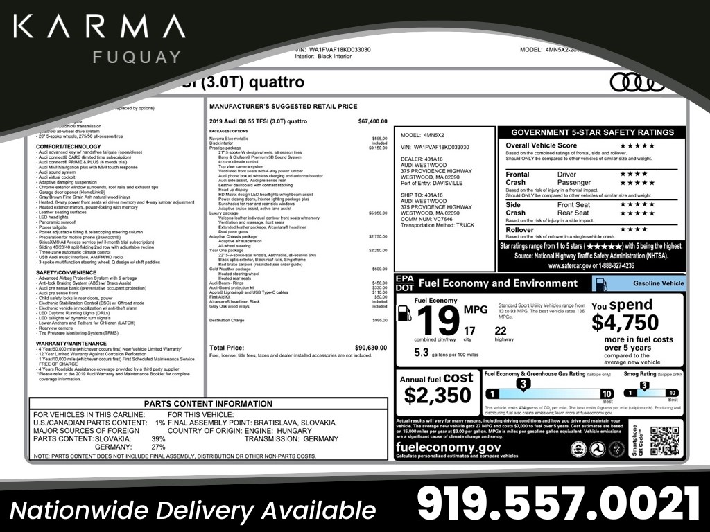 How much does the Audi Q8 cost in Chesterfield, SC?