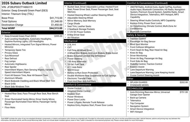 | 2026 Limited AWD | $41,715 |