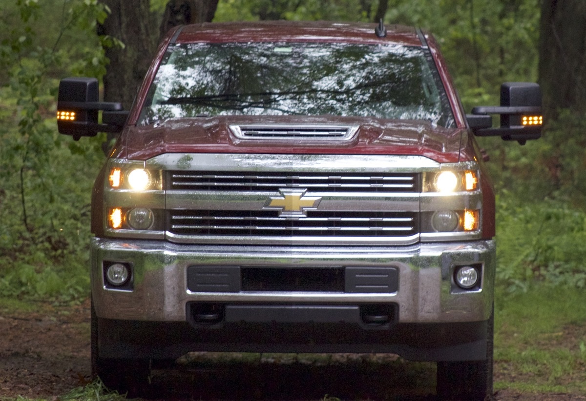 There is no chance that anyone will lose the Silverado HD in a crowded parking lot. It features the crisp, straight lines and split-bar grille it shares with the Silverado 1500—there's just more of it. The grille is quite a bit taller, the hood is something off a Tonka truck, and it has heaps and heaps of chrome.
