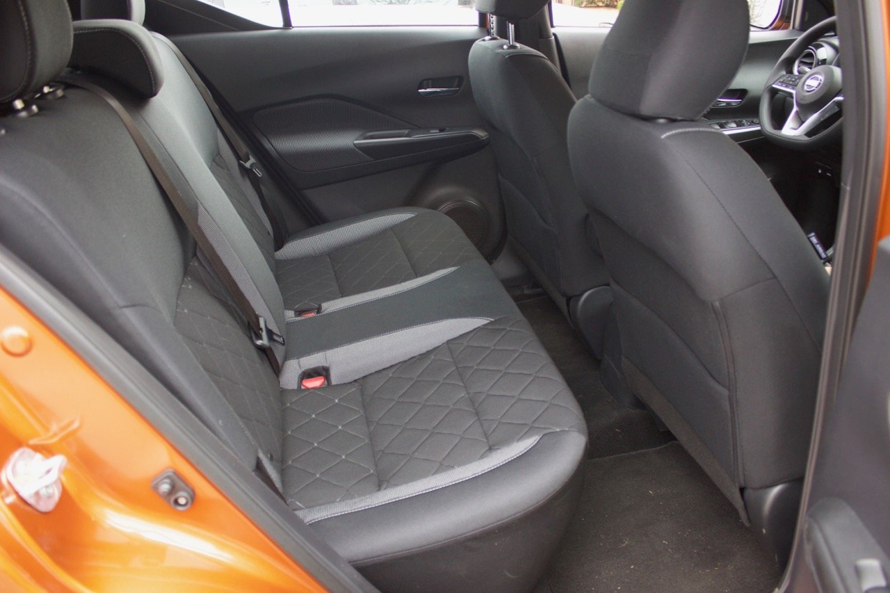 Unfortunately, the front seats are quite uncomfortable, and it’s nearly impossible to find a normal position. The front seats are 6-way manually adjustable (the front passenger seat has 4-way adjustability), with a barber-shop-like hand crank for seat height. This would be fine if Nissan offered power seats in higher trims, but Nissan doesn’t put them in any trim. No matter how much you spend on a Kicks, you’re stuck with crank seats.