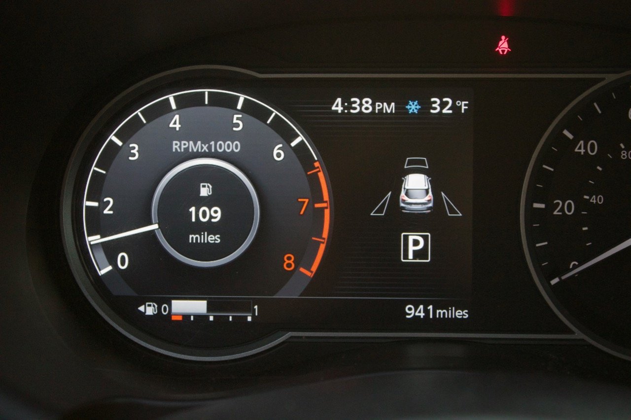 The digital instrument panel that comes in the SV and SR trims is a nice touch. It retains the analog speedometer on the right, but replaces the tachometer with a color digital display that pans from where the tach would have been to the center trip computer. This allows for a digital representation of the tachometer, which can be quickly cycled out to display other critical information like fuel economy, tire pressure status, and any number of driver-assistance features.