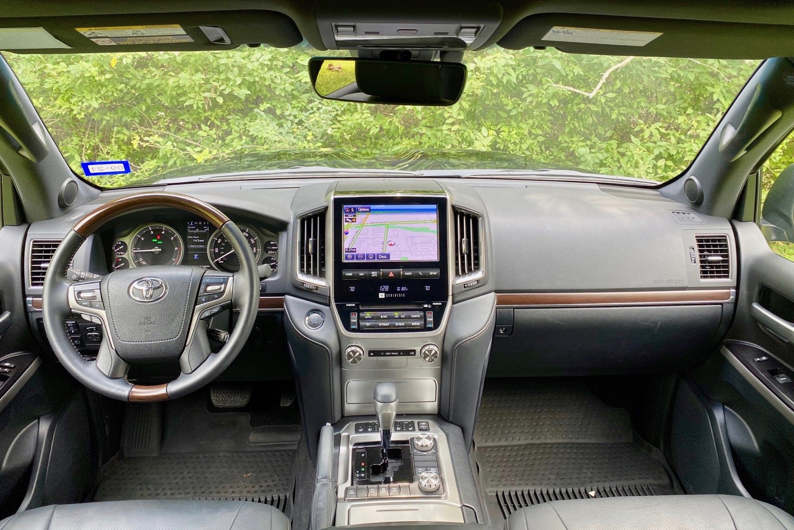 The Land Cruiser’s 9-inch touchscreen interface is sufficient, but it looks a little small compared with some of the fresher competitors, where 11-inch, 12-inch, and multiple-screen interfaces are not uncommon. Using the 9-inch screen in split-screen mode for navigation and audio leaves little room for a useful map, negating much of the usefulness of the mode.