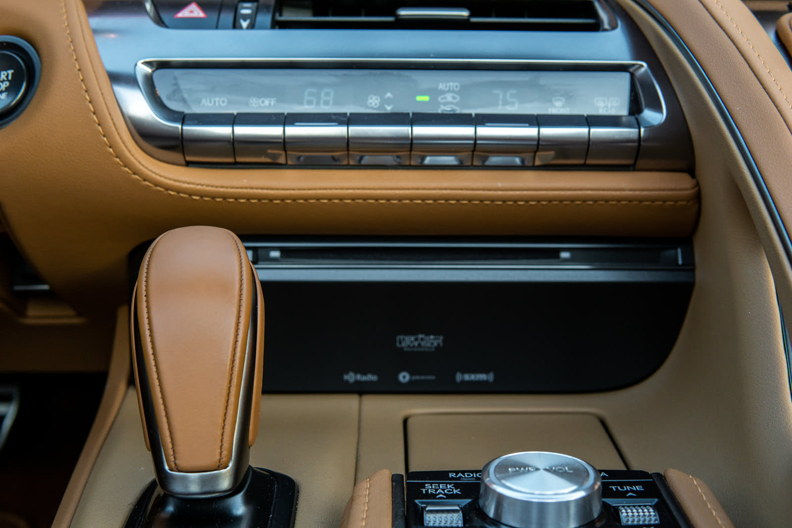 The LC has a drive mode selector with Normal, Eco, Sport, and Sport+ drive modes. It is cleverly positioned as a toggle protruding from the right-hand side of the cowl for the instrument panel. The actual shift column has the same layout as that of a Toyota Prius. But rather than pulling back on the shifter for the “Engine Braking” mode, it engages manual mode. Having the shifter from a car where performance is an afterthought seemed odd, but it is surprisingly ergonomic and plays well with the other controls.