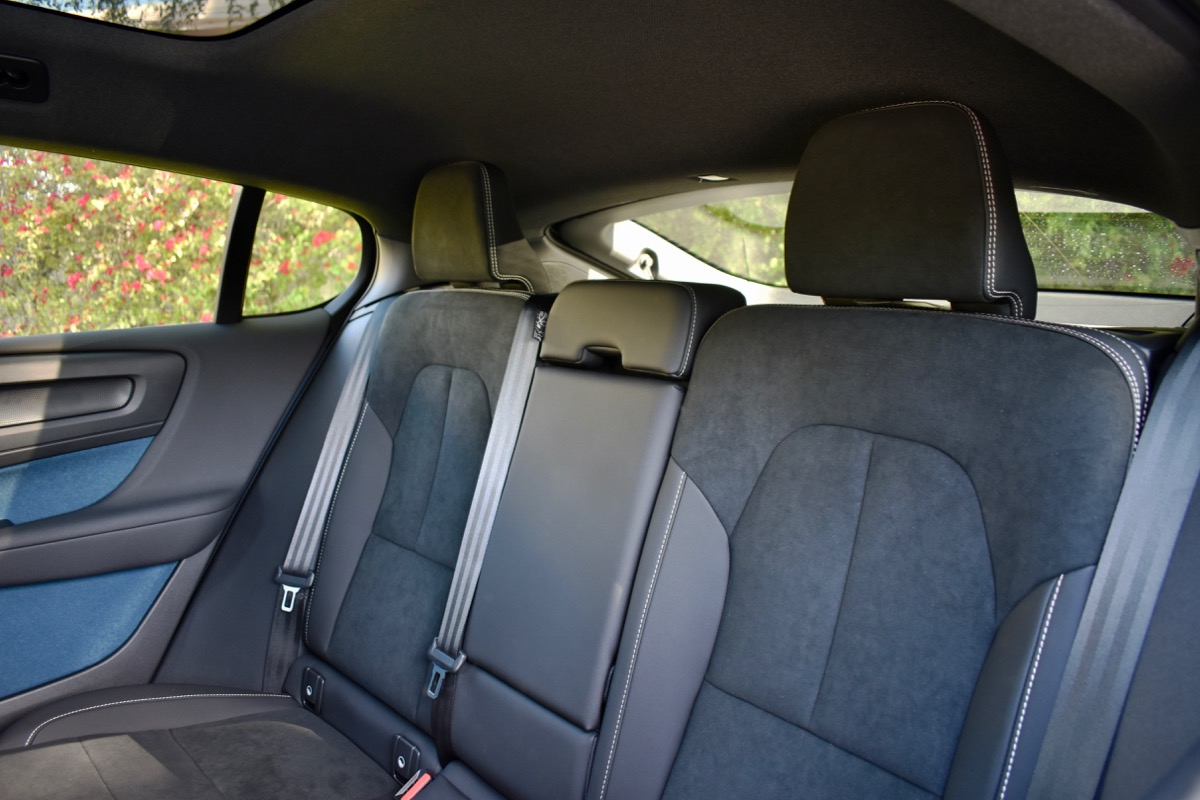 While the C40 does have the elevated seating position of a traditional crossover, and good side visibility thanks to well-placed exterior mirrors, rear visibility is seriously compromised. The streamlined roof didn’t leave much room for a rear window, and Volvo doesn’t offer a rear-camera mirror. This is a problem with other SUV coupes as well, and apparently the price you pay for style.
