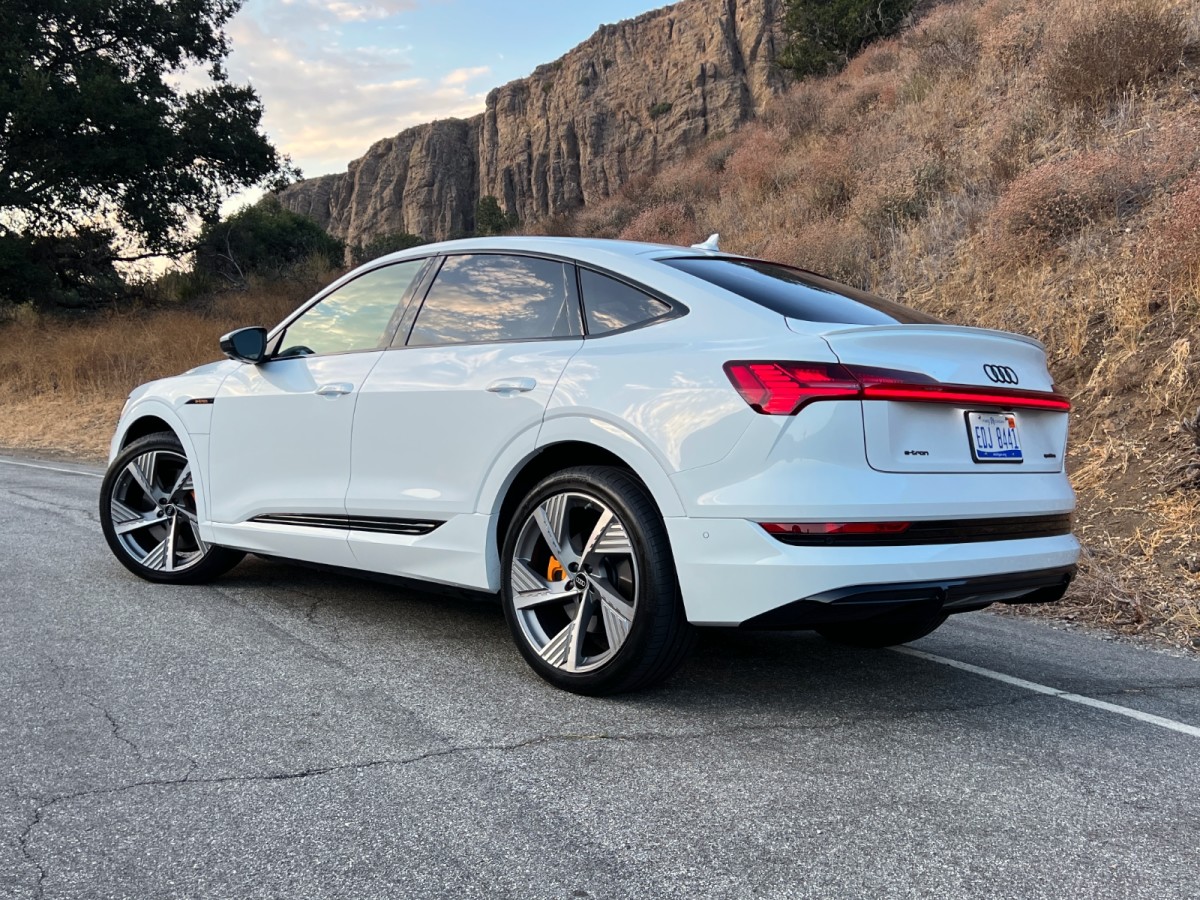 Audi’s use of “e-tron” is confusing. First, it’s technically lowercase, like this: e-tron. But that’s just weird. Second, since the name first appeared on a 2010 concept vehicle, both plug-in hybrids and electrics have worn it. Third, Audi has used e-tron interchangeably as a model name and a powertrain designation. This review is about the e-tron SUV model in its Sportback configuration.
