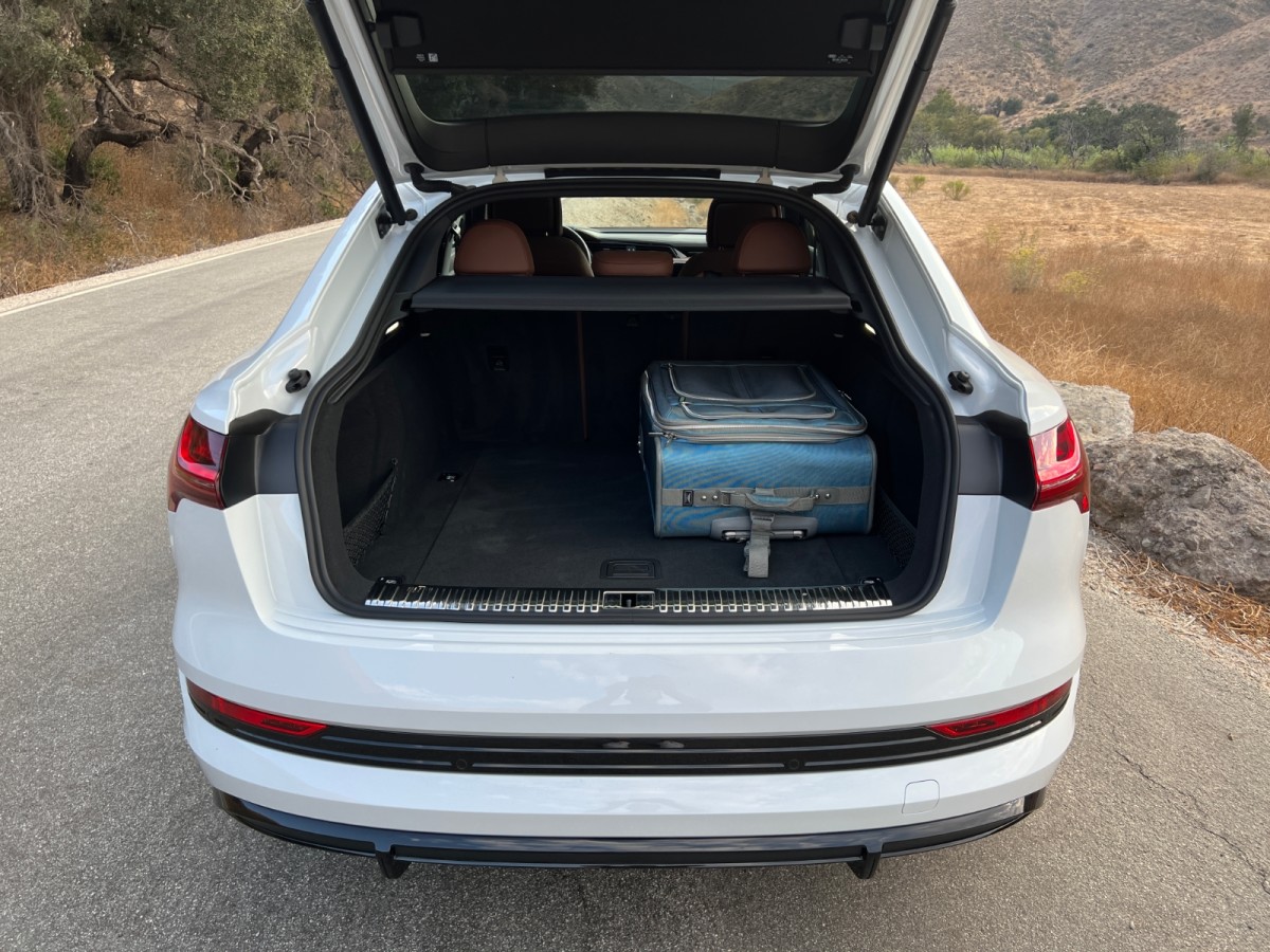 Compared to a standard e-tron, the e-tron Sportback loses 1.1 inches of rear-seat headroom, 1.3 cubic feet of cargo room behind the back seat, and 1.9 cu-ft of maximum cargo room. Otherwise, it is just as roomy for five people and their luggage as the standard e-tron.