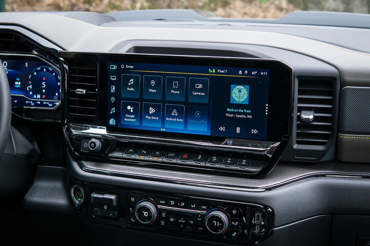 Every trim but the WT and Custom come with a more modern dash layout, highlighted by a 13.4-inch touchscreen with wireless Apple CarPlay and wireless Android Auto. The screen is vivid and responsive. These models also come with a fully digital instrument panel. The Custom adds a Wi-Fi hot spot and LTZ trim adds wireless device charging, as well as additional USB ports to complement the two standard USB ports. If you prefer the glitz and shine of a modern infotainment system, most of the trims will have you covered, but if you prefer simplicity in your infotainment layout, the WT and Custom trims bring just the tech necessities.
