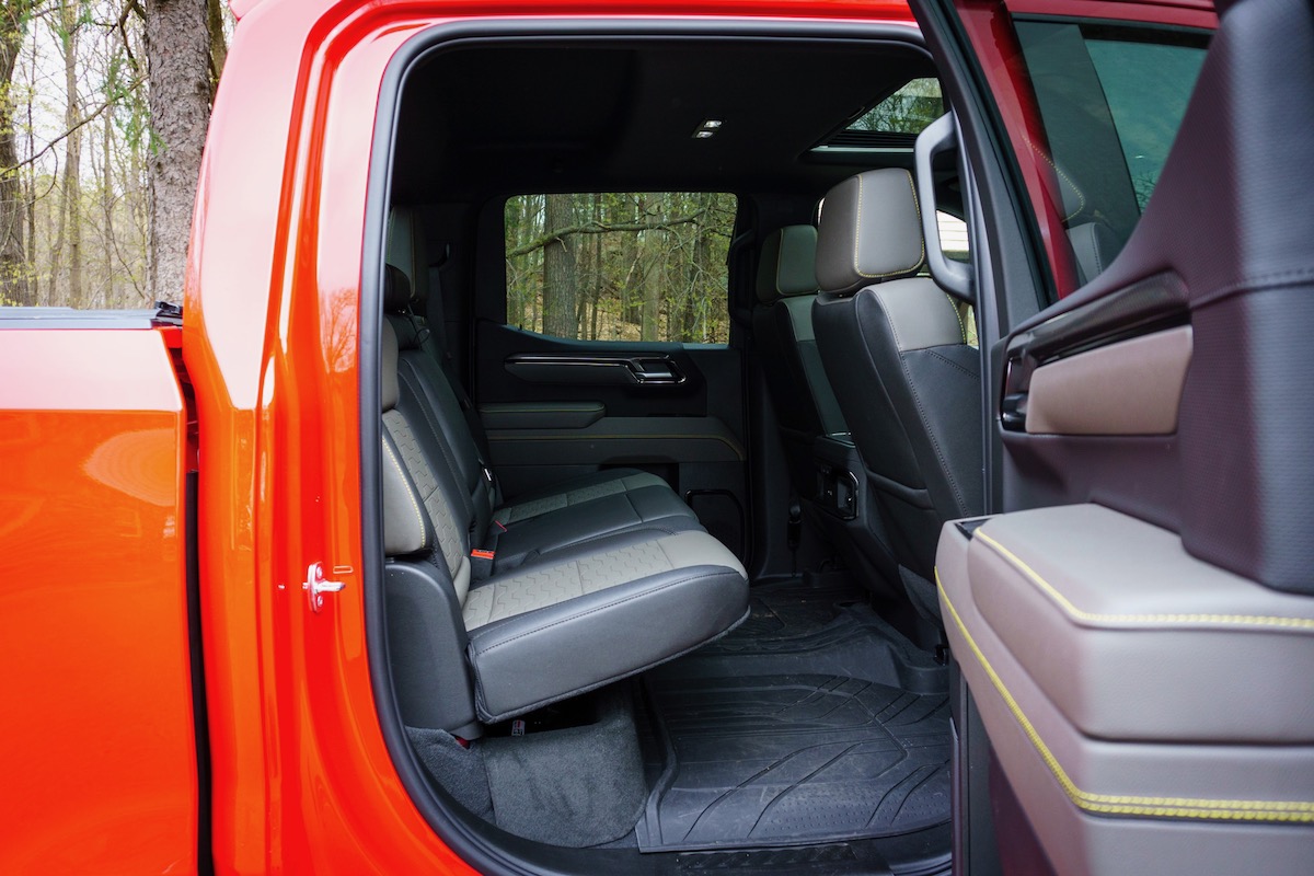 The double cab is the extended-cab model. Rival trucks such as the Ford F-150 have rear half-doors that require opening the front door to access the rear seats. The Silverado instead has conventional car doors, making access to the rear seats quite easy. There’s plenty of rear headroom, but legroom is a bit limited, which should be expected from this intermediate body style. If you just need the back seats in a pinch, the double cab will be a great option, as the front seats are spacious and supportive.
