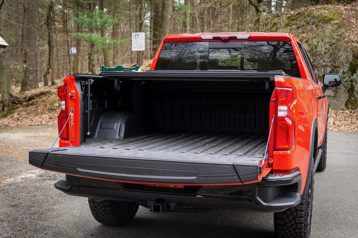 We drove the Trail Boss off-roader, which is based on the Custom or LT trims. Ours was based on the Custom, and it adds standard four-wheel drive (4WD) with a two-speed transfer case, skid plates, and upgraded shock absorbers.