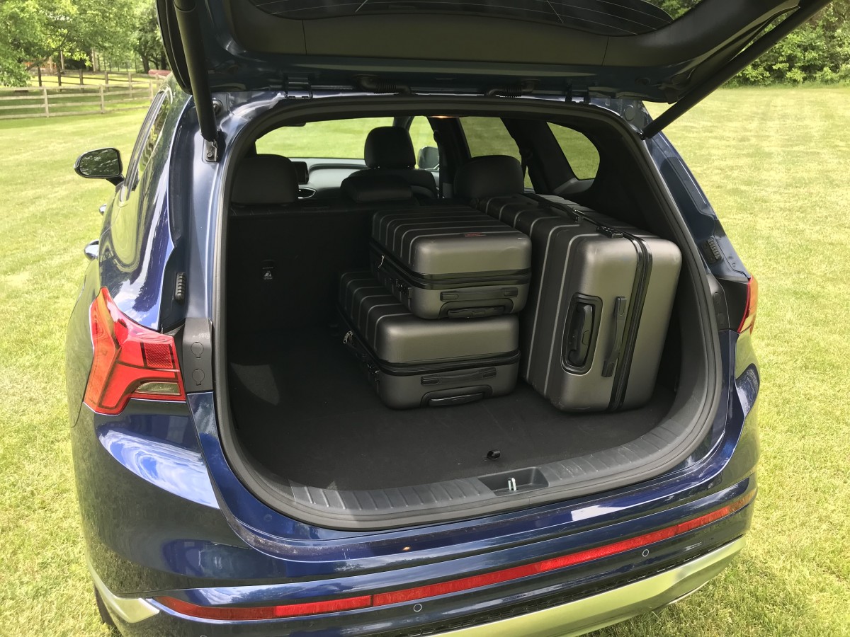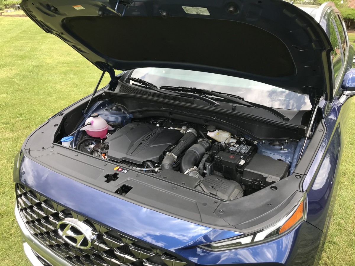 According to the Environmental Protection Agency (EPA), the non-turbo 2023 Hyundai Santa Fe FWD returns combined city/highway fuel economy of 26 mpg, while the AWD version gets slightly less at 24 mpg combined. Opting for the turbo engine brings a small mileage penalty; the turbo FWD delivers 25 mpg combined, while the AWD version gets 24 mpg combined. During our week of testing in the Calligraphy AWD, we averaged 22.9 mpg in mixed driving—about one mpg below the EPA's estimate. With a fuel tank capacity of 17.7 gallons, our maximum travel range would be approximately 400 miles.