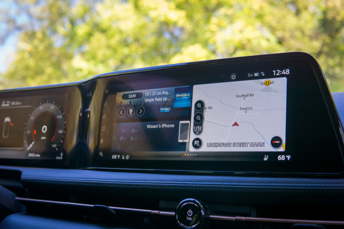 Connected in-car apps: SiriusXM Stocks · Infotainment: NissanConnect · Infotainment screen size: 12.3 in. · Smartphone integration: wireless Apple CarPlay