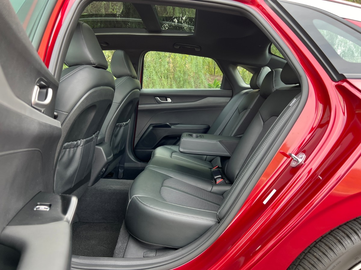 Otherwise, the K5 GT-Line is a delight to drive. The turbo four delivers a healthy amount of torque starting at just 1,500 rpm, and it sounds good as you accelerate, the transmission delivering rapid, decisive shifts. However, passing power is in short supply at the upper reaches of the rev range, so be patient.