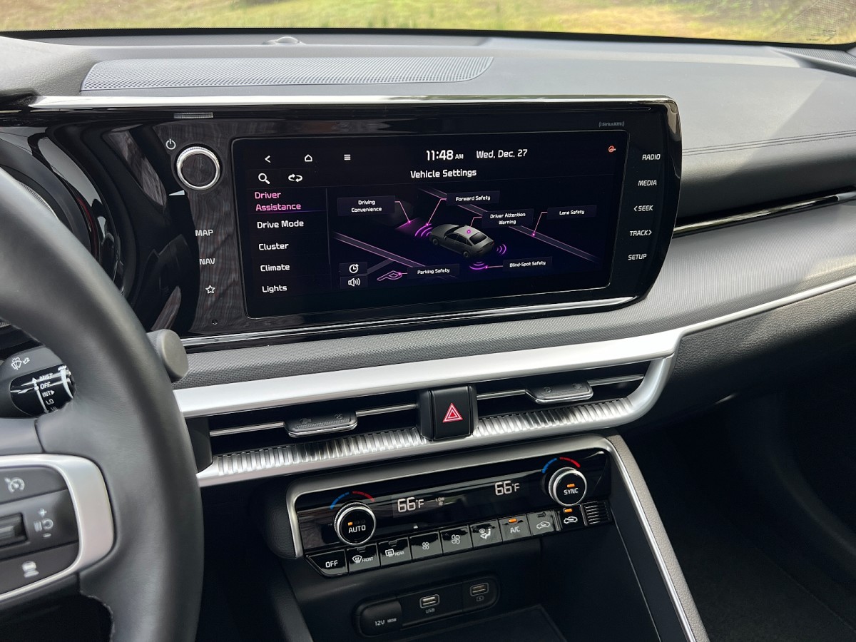 The Kia K5 LXS has a standard 8-inch touchscreen infotainment system, while others get a 10.25-inch touchscreen. Apple CarPlay and Android Auto are standard, wireless in the LXS and requiring a wired connection in the more expensive versions of the K5. That’s the opposite of what you might expect.