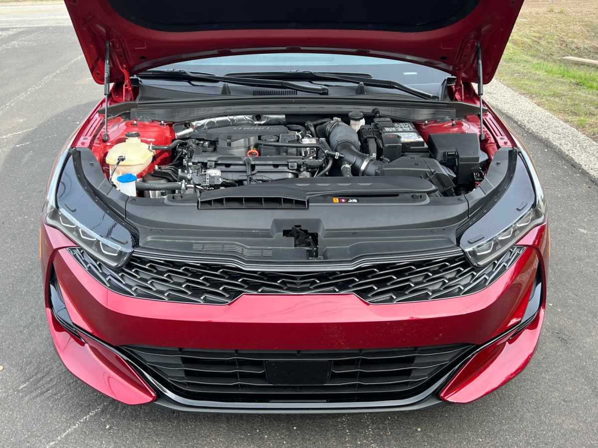 Step up to the K5 GT model for a turbocharged 2.4-liter four-cylinder generating 290 horsepower at 5,800 rpm and 311 lb-ft from 1,650 rpm to 4,000 rpm. It employs an eight-speed dual-clutch transmission and is available only with front-wheel drive.