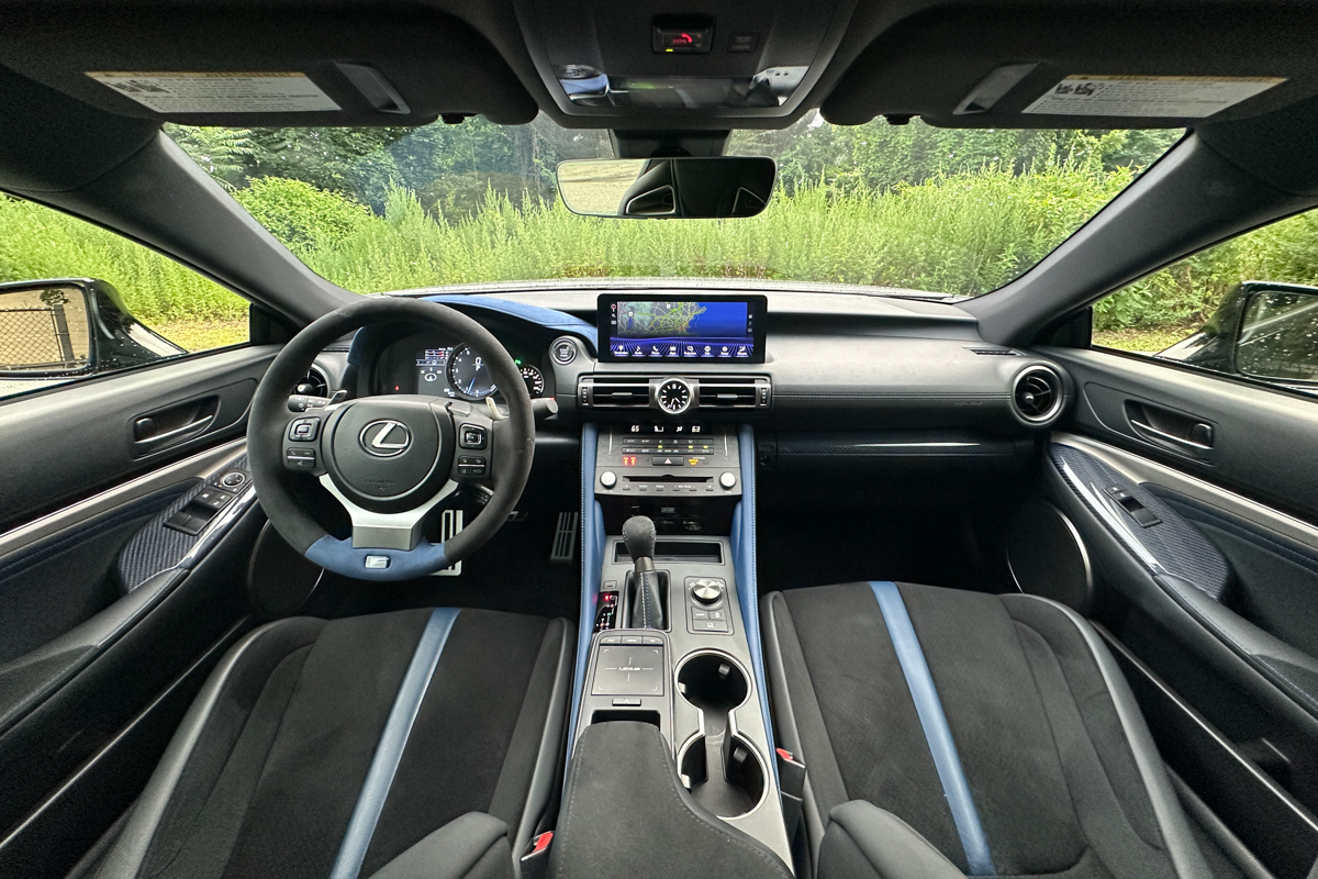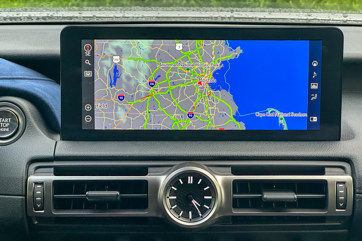 It’s clear that in the RC F, the “user interface” of priority is the one between the driver and the car itself. This is not to say that the tech wasn’t thoughtfully designed at some point, but it certainly has not kept pace with the platforms found in other Lexus vehicles in this third decade of the 21st century. Even the larger 10.3-inch touchscreen, which replaced the base 8-inch version in our test vehicle thanks to the Premium Audio package, proved to be dated in appearance and finicky to operate. Lexus has fortunately done away with the touchpad in most vehicles, but in the RC F (and the RC), it’s still right there in the center console, taking up space behind the shift lever and forcing you to reach for it any time you want to, for example, return to the main menu. We at CarGurus have been vocal supporters of physical controls, because so many people find buttons easier to operate. To be fair, the RC and RC F technically do rely on hard controls, but as it turns out, there’s a line, and it’s this touchpad. So here’s something we never expected to say: More touchscreen operations, please!