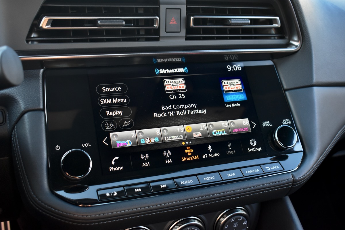 The touchscreen and instrument cluster graphics have the same white-on-black theme as other recent Nissan models. The look feels appropriate to the brand, and a car designed to emphasize the driving experience, it’s functional as well. Text is easy to read at a glance so you can actually focus on driving, and nothing on the main touchscreen is elaborate or flashy because that’s not the point.