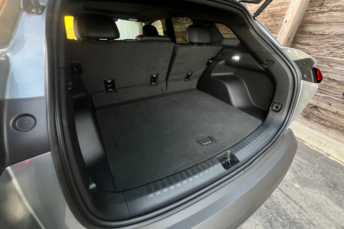 Behind those seats, the Blazer EV can hold up to 25.5 cubic feet of cargo, which is about average for the class. The space itself is flat without any significant obstructions, which, along with the hands-free power liftgate (standard on RS and SS), should make loading easier. The sloping rear hatch will make bulky objects harder to fit, though.