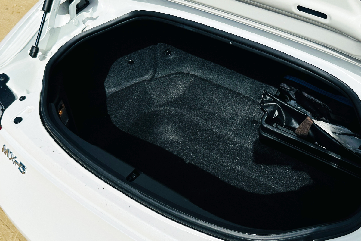 There is only 4.59 cubic feet of space in the trunk, but it's pretty deep for the size. We were able to fit our hard-sided carry-on suitcase and a small backpack easily, with room a few cracks left over to stuff soft items into. You'll have to pack thoughtfully in the MX-5. We recommend boning up on your Tetris skills to take advantage of every nook and cranny.