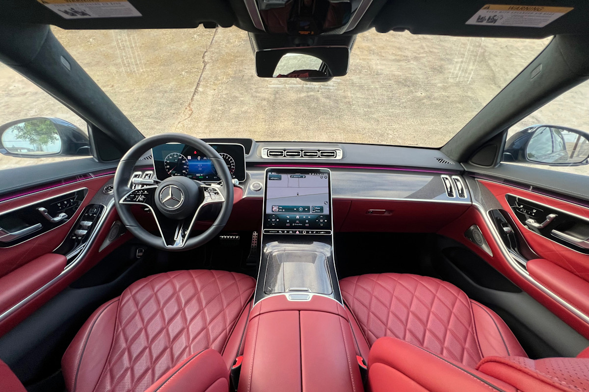 Thankfully, the cabin is bathed in premium materials, from supple leather that smells divine to sturdy and attractive trim elements. There are several upholstery colors to choose from, as well as trim materials that include lacquered wood surfaces, a natural-grain walnut that adds some visual warmth, or the carbon-fiber-like dot pattern of our test vehicle. Mercedes' praiseworthy construction is also evident throughout the interior, with no detectable creaks or squeaks. Surpassing this level of excellence would require a substantial budget increase to a Bentley, Rolls-Royce, or the even more luxurious Mercedes-Maybach S-Class.