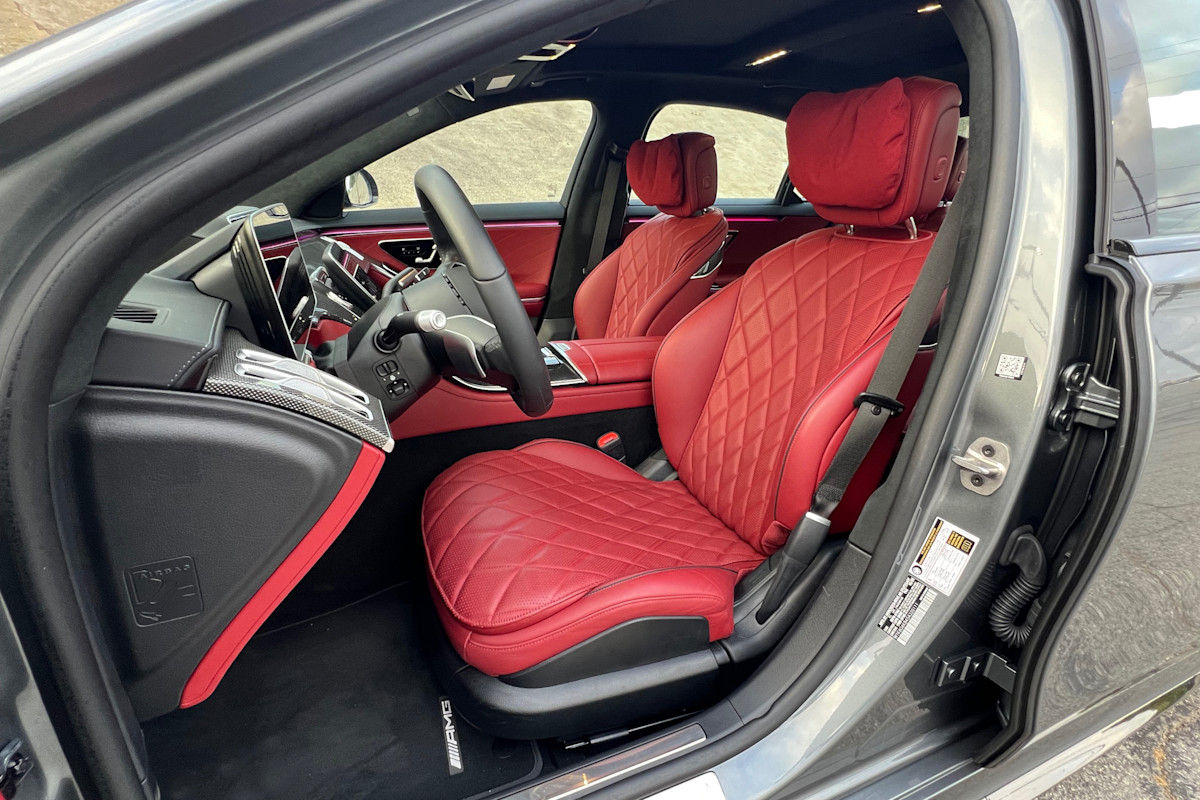 The curvaceous front seats look and feel as wide as classic wingbacks or Eames lounge chairs, with an abundance of space for larger occupants. They're well-shaped enough that they don't require a dizzying amount of adjustments, though the soft headrest pillows take some getting used to. Long road trips are made even more comfortable thanks to heating, ventilation, and a strong massage function that are standard on all models.