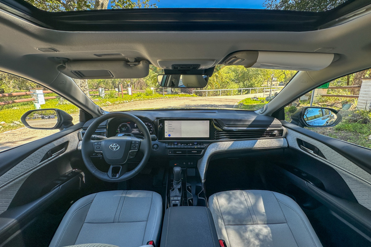 The automaker has developed two distinct suspension tunings for the 2025 Camry. We drove the XLE which, like the LE, is more comfort-focused, so we did not experience the sport tune of the sport grades. We found that handling-wise, the Camry does feel planted. The hybrid system switches subtly between gas and electric power without jarring transitions, but that is not to say the powertrain is quiet: you do hear it working at higher speeds and when passing others on the highway. The acoustic laminated front side glass of the XLE (also found on the XSE) did limit road and wind noise, but not the sound coming from our own engine.