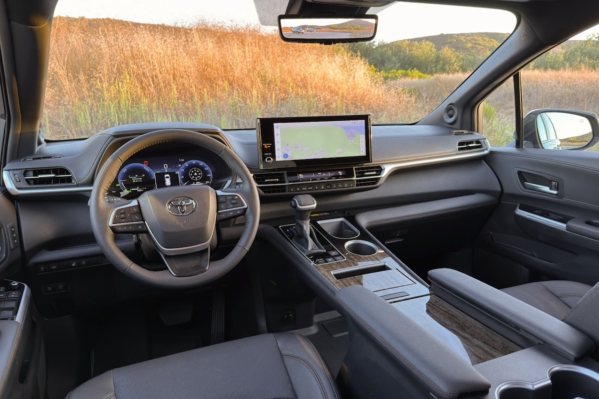 Toyota says it has updated the Sienna’s interior for 2025. The Platinum trim level includes a “new woodgrain finish for an upscale look.” A 17-year-old passenger, who rarely comments on such things, got into the Sienna, pointed at this material, and deemed it ‘chopped.’ That, in teen slang, means it did not look good. She also didn’t like how it faded to black at the forward end of the center console.