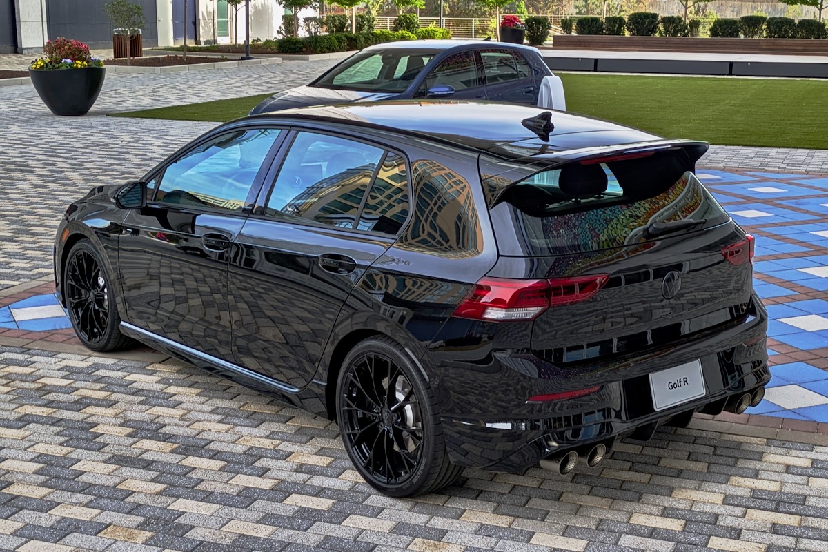 VW claims to have introduced a minor facelift for 2025, but it’s hard to spot. More substantial changes are new 19-inch wheels that are 20% lighter than the previous Golf R wheels, according to VW, with standard summer tires. A new Golf R Black Edition features gloss-black versions of these, along with blacked-out exhaust tips, badging, and exterior trim. Also new for a 2025 is a Euro Style Package that includes an Akrapovič titanium exhaust system and sunroof delete for maximum street cred.