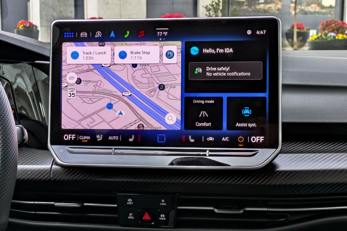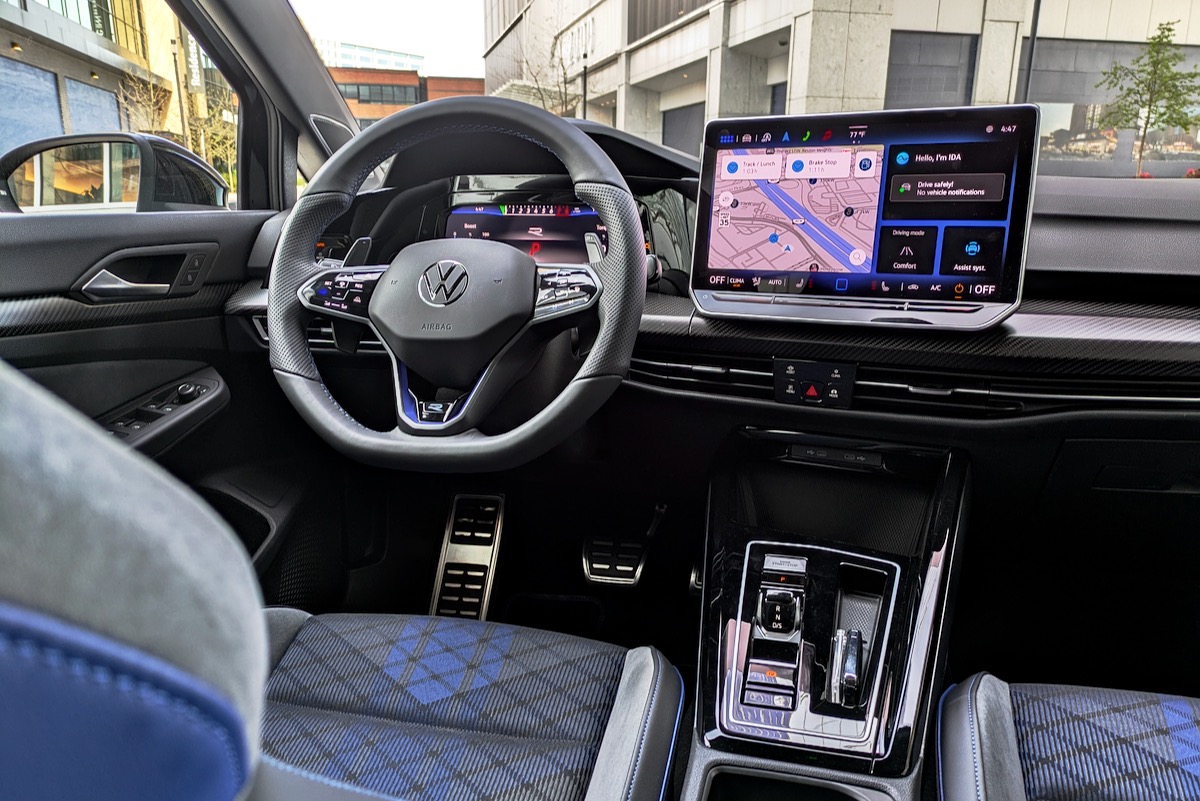 However, Volkswagen also continues to use frustrating haptic touch sliders for audio volume and temperature (three-zone automatic climate control is standard). And while the GTI gets conventional buttons on its steering wheel for 2025, the Golf R continues with haptic versions of those controls as well. These are the worst of both worlds. They’re difficult to use precisely when you actually want to adjust something, but still sensitive enough to be triggered by an accidental brush of the hand.