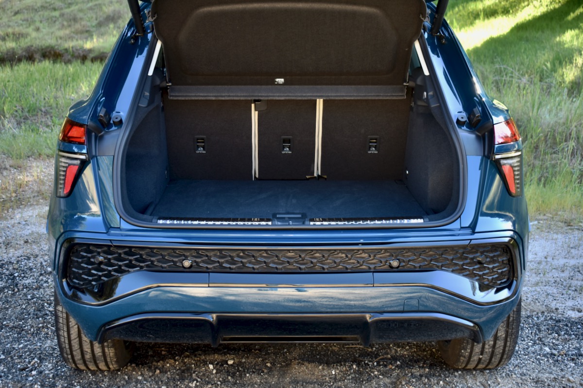 The new Q3 is 1.8 inches longer, 1.2 inches taller, and 2.5 inches wider than the 2025 model, but with a nearly identical 105.6-inch wheelbase. That translates to identical legroom in both rows, but a standard reclining and sliding second-row bench seat helps make the most of that space. Scoot that 40/20/40 split-folding bench all the way forward and leave it upright, and the 2026 Q3 boasts 29 cubic feet of cargo space—5.3 cubic feet more than the outgoing model. Cargo room with the rear seat folded also increases by about two cubic feet, to 50 cubic feet in total.