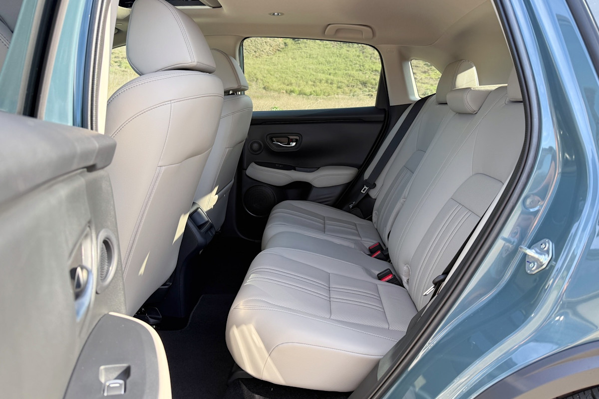 At least the storage situation for the driver and front passenger is reasonable, even if the surfaces are plastic and produce scratching noises when things slide in them. The seats are pretty comfortable, too, especially the height-adjustable driver’s seat with eight-way power operation in the HR-V EX-L. Those who live in cold-weather climates will also appreciate the heated front seats in the HR-V Sport and EX-L.