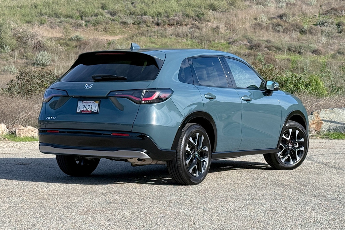 The test vehicle looked great—for a Honda HR-V. This little crossover’s blobby grille, stubby butt, and weird profile—which makes it appear as though it's leaning forward—are not inherently appealing. But the green paint and the EX-L’s 18-inch alloy wheels tucked under the gloss-black wheelarches make the HR-V look about as good as it can.
