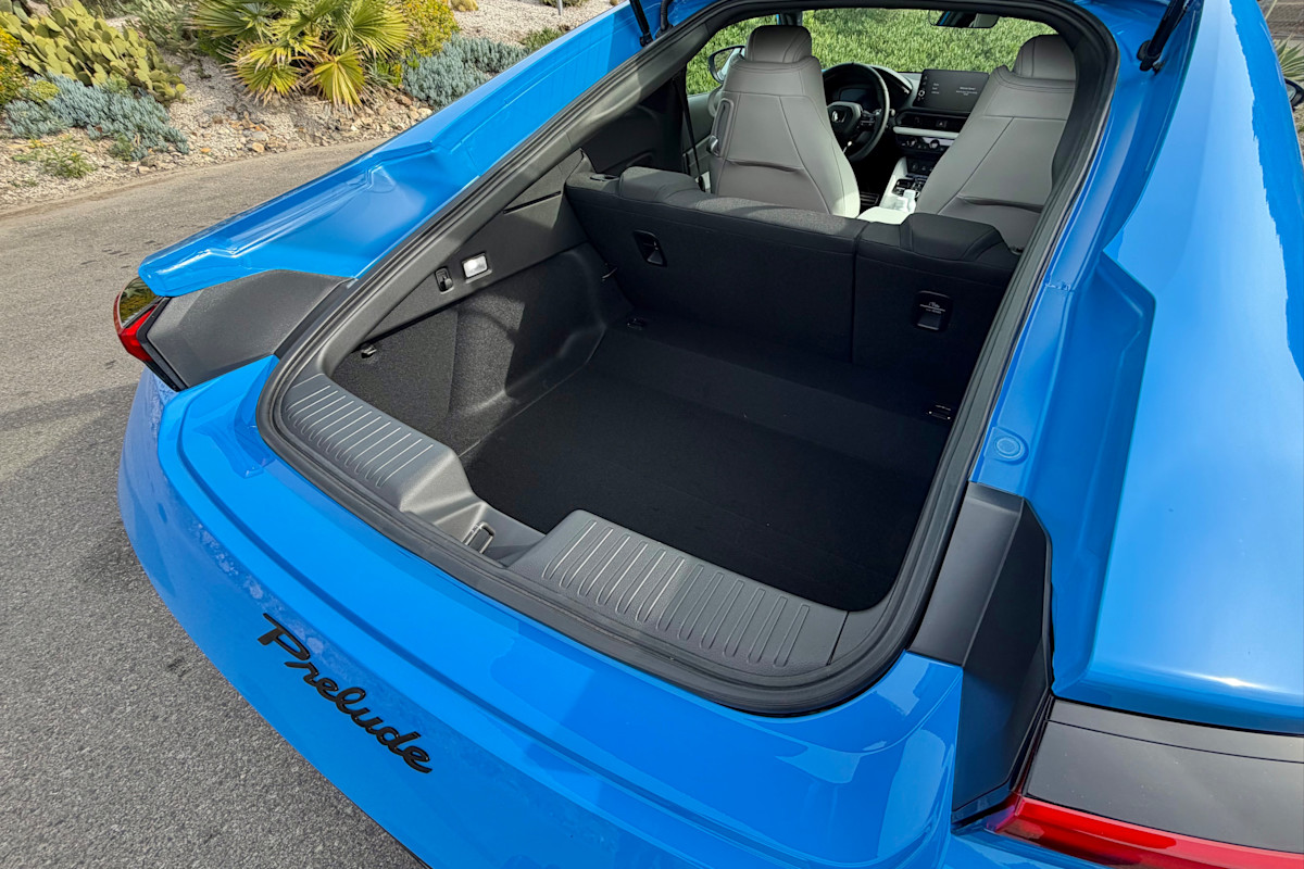 This new Prelude is the first hatchback in the model’s history, which greatly improves its versatility and utility. Behind the rear seatbacks, the cargo area can hold up to 15.1 cubic feet. That's a volume more often associated with midsize sedans instead of sporty coupes, and stowing the rear seats makes room for much bulkier items, even though the seat backs don't fold flat with the floor. However, the liftover height over the bumper is tall, and will require more effort to load heavier cargo. The cargo floor can be folded to create a sort of partition to better secure loose items, and a pair of hooks should keep your shopping bags from emptying their contents.