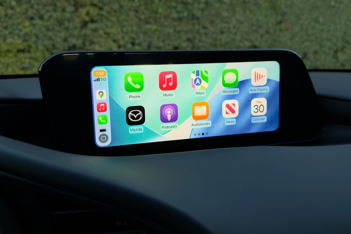 Connected in-car apps: Google POIs · Infotainment: Mazda Connect · Infotainment screen size: 8.8 in. · Smartphone integration: wireless Apple CarPlay