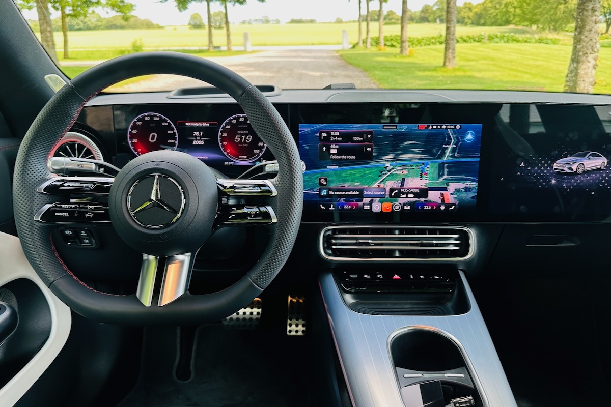 Official EPA ratings weren’t available at the time of publication, but the single-motor CLA is rated at 492 miles on the more-lenient WLTP cycle. The AWD CLA 350 4Matic hadn’t been tested in Europe either when we embarked on this first drive, but is likely to have less range. We expect lower numbers for both models on the EPA cycle, but the CLA may still get close to 400 miles. Plus, Mercedes cars often perform better in the real world than they do in EPA testing.