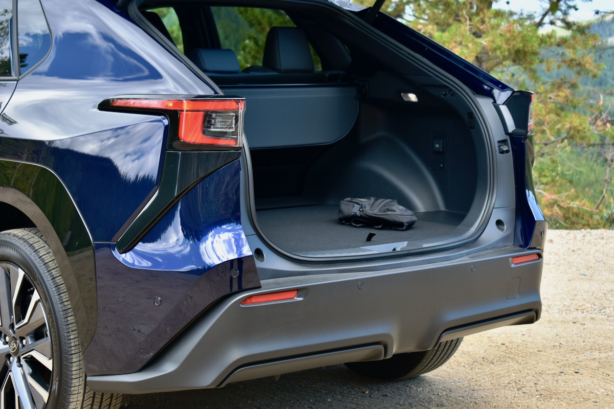 When it comes to cargo space, the 23.8 cubic feet behind the Solterra’s rear seats trails most rivals EVs by a significant amount. It’s 5.9 cubic feet less than you get in a Ford Mustang Mach-E and 6.5 less than in a Volkswagen ID.4, for example. The Ford also has a large frunk, something the Subaru doesn’t have but, then again, neither do many of the other EVs it will be cross-shopped against. Things improve with the rear seats down, as the Solterra’s 63.5 cubic feet trails only the VW.