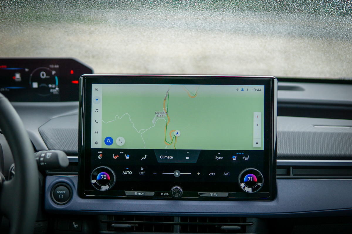 Subaru engineered the AWD system specifically around the electric powertrain, with torque vectoring not just front to rear but also left to right. In off-road driving, the system demonstrates its ability to shift power to individual corners as the traction demands fluctuate beneath each wheel. X-Mode—Subaru’s off-road traction management system—offers Snow/Dirt and Deep Snow/Mud settings for more serious terrain. All-terrain tires are not a factory option on the Trailseeker (they are on the bZ Woodland), yet we didn’t need grippier rubber to make it through a short off-road loop in the Trailseeker. If anything, the Subaru Trailseeker proves that shoppers don’t need the all-terrain tires offered on the bZ Woodland, nor do they need the roughly 20-mile range penalty those off-road tires levy.