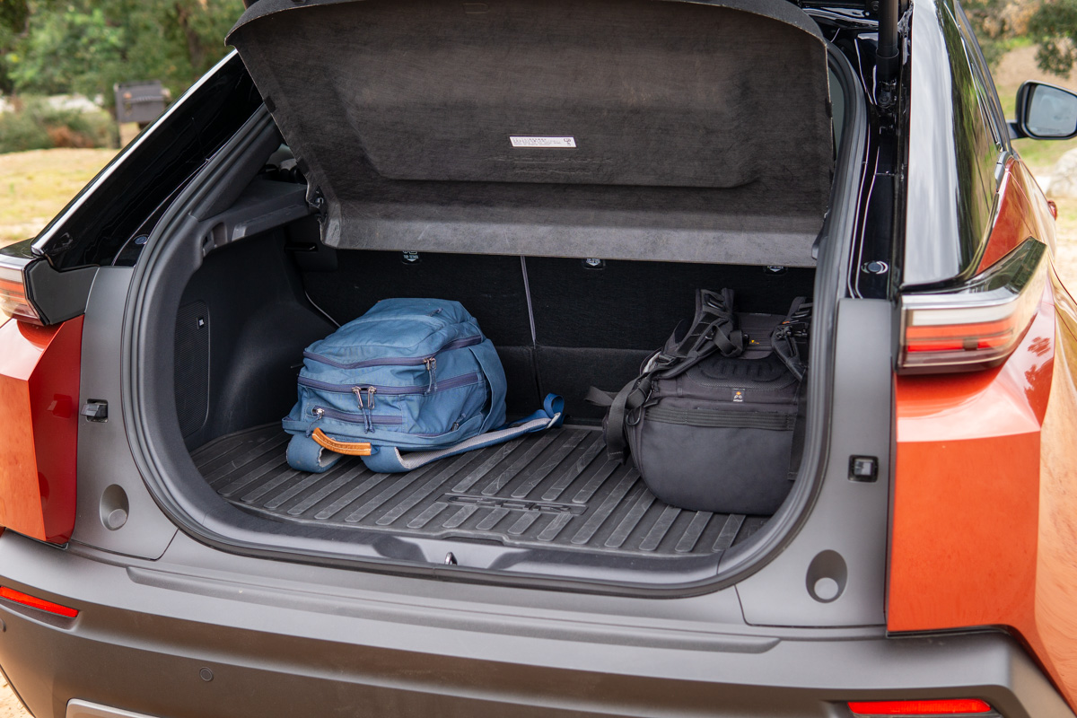 The rear seats fold down with a 60/40 split, and they also recline. Behind those rear seats, the C-HR offers 25.3 cubic feet of cargo space, which expands to 59.5 cubic feet with the seats folded. The Chevrolet Equinox EV is comparable, with 26.4 cubic feet that opens up to 57.2, but in reality, it doesn’t feel close. For anyone in need of more cargo space, we recommend the more expensive bZ Woodland.