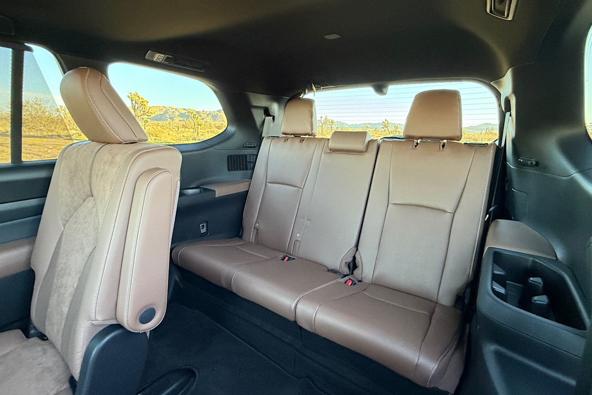 Those with kids will find it easy to install a rear-facing car seat in the second row, and most trims get retractable window shades to keep the sun off the precious cargo. Parents will also find two sets of anchors in the third row (they can often be difficult to find but Toyota makes it simple). Plus, the third row is easy to access thanks to the substantial adjustability of the second row.