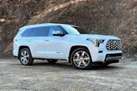 Summary | Benefactor of a long-overdue redesign, the 2023 Toyota Sequoia is an improved full-size SUV in every way except for the full-size SUV part of the equation. Though the 2023 Sequoia is about the same size as the outgoing model on the outside, it shrinks on the inside to make room underneath the cabin for a standard hybrid powertrain. As a result, the third-row seat is best reserved for kids, and cargo space is on par with midsize crossovers such as the Kia Telluride and Volkswagen Atlas rather than full-size rivals like the Chevrolet Tahoe, Ford Expedition, and Jeep Wagoneer. | In reality, it achieves two of those objectives, but despite Land Rover’s best efforts, the new 2023 Range Rover Sport poses no threat to Audi, BMW, or Mercedes-Benz when it comes to on-road driving dynamics. Off-road, it feels unstoppable. But when was the last time you saw a Range Rover Sport off-road? |